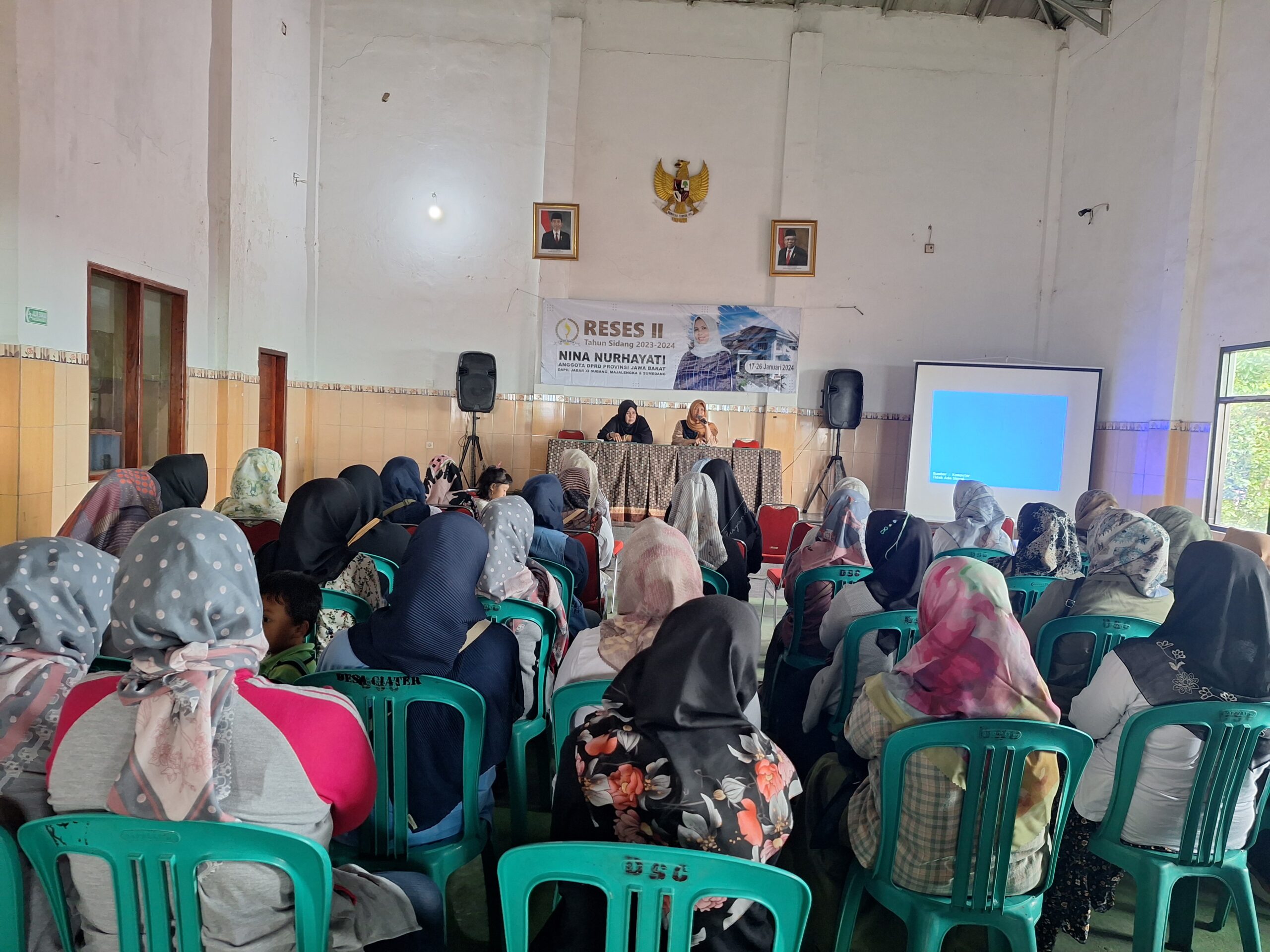 Nilanews_ Acara RESES II DPRD Jawa Barat Atas Nama Nina Nurhayati yang berlangsung di Aula Desa Ciater dihadiri oleh ibu Kader Posyandu se Kecamatan Ciater.